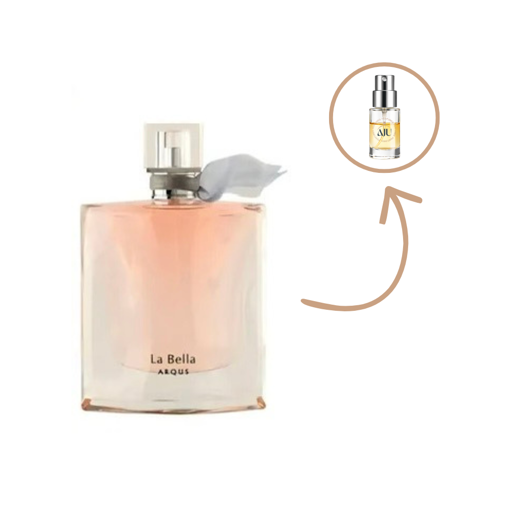 La Bella da Arqus é um perfume feminino da família Floral Frutado Gourmand, com classificações frutado, adocicado, gourmand, floral branco, baunilhado e ambarado, trazendo uma fragrância doce, elegante e muito viciante — bem no estilo que vende MUITO.